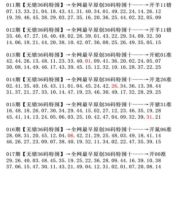 013期 精选七不中 〖05-08-13-31-35-45-48〗 013期 开: 09-19-44-27-37-06 T01 准 |